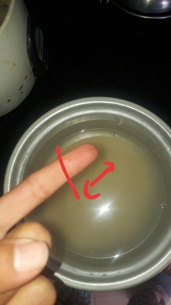 Step 4: Add 1 finger tip of water to the rice. (1 finger tip = good enough, More = Sticky rice, Less = Hard rice)