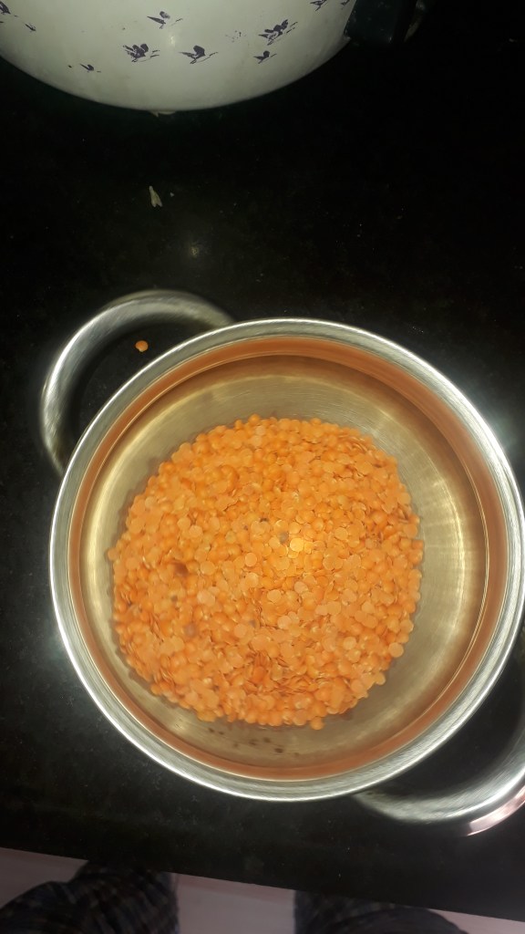 Step 2: Get them pulses into a bowl. 1 handful = Good enough for like 2 people. (More pulses = thicker dal)
